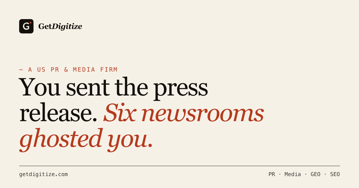 GetDigitize is a five-person US PR and media firm helping founders, local operators, and D2C brands land press coverage and AI-era search visibility. Founded in 2022 by Sunny Goyal in California.